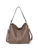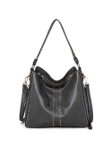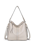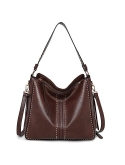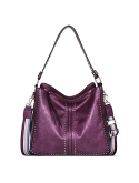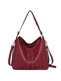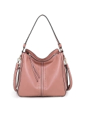 DesignThe front of the handbag is decorated with studs,top zipper closure.There is a small zipper pocket on the back, which is convenient to carry and take out small items such as mobile phones and transportation cards that you need to use at any time.