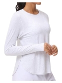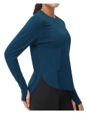 High Low Hem : The workout tops features a high low hem that adds mobility to the workout shirts and makes the top look stylish and flow.The long,rounded hemline provides extra coverage for the hips,but isn't too long or rolled up .