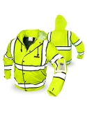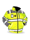 LIMITED EDITION SAFETY BOMBER JACKET - Premium high vis jacket featuring: (1) clear ID pocket, (2) front pockets & (1) chest pocket large enough to hold phone/tools, (1) arm pocket, (3) interior pockets, (1) hideaway hood & (1) heavy duty zipper to keep you warm day/night. This men's work jacket keeps you dry by withstanding light rain, wind & other weather. Insulated reflective jacket men includes adjustable elastic wrist cuffs allowing you to keep in warmth & move freely w/ a comfortable fit.