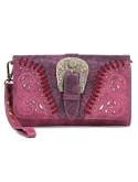 Womens Leather Wallet Clutch Western Bling Embroidery Embossed Tooled
