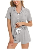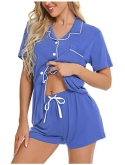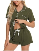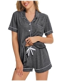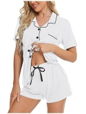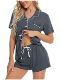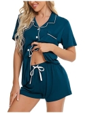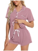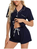 PERFECT FITTwo-Piece Short sleeve pajama set with button front top and shorts for relaxed fit. Short sleeve pajama set features chest pocket, notch collar and contrast piping trim. It's slick and durable, bringing optimum comfort to your leisure time.