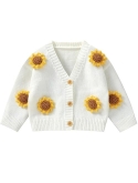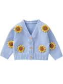 Design: Knitting baby girl clothes with long sleeve, hand-embroidered floral and front wood button design.