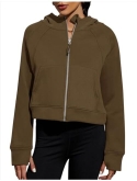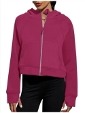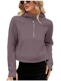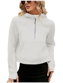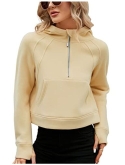 [FEATURES] Casual workout sweatshirt, long sleeve with thumbhole, relaxed fit, 1/2 zip up stand collar, cropped length just right around the waistband, solid color, kangaroo pockets, fleece lined block out cold and chill