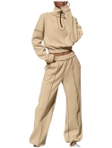 WOMENS FLEECE SWEATSUIT 2 PIECE OUTFITS: Sweatshirt and joggers set for women, half-zip, stand-up collar, pullover style, casual drop-shoulder oversized sweatshirt pullover, high elastic waist, long sweatpants, 2 pockets, relaxed fit, womens matching sweatsuit set, skort sets women 2 piece outfits, sweat sets for women 2 piece, brown sweatsuit.