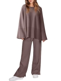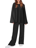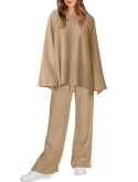 Design -Top: crew neck, oversized loose, Side Splitlong sleeveswid Leg Pants: Elastic Drawstring, high-rise design, pull-on style. Worn as a set or separately to run errands or wear boots and wear it to dinner, it is so versatile.