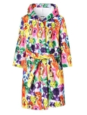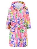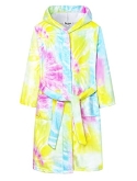 Rainbow polka dot pattern adds a bit of fun to these facecloth plush bathrobes.