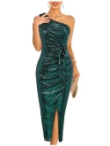 Unique DesignThis sequin cocktail dresses has a unique design with sequins, one shoulder, sleeveless, invisible zipper, front slits, bodycon wrap ruched skirt to hide tummy, with finely tailored lines along the curves of the bust waist and hips, show your charming.