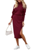 STYLISH DESIGN: Women 2 Piece Long Sleeve Outfit/Turtleneck Knit Top For Women/Split Hem Skirt Sets/Bodycon Dress For Women/Fitted Skirt For Women/Party Dress For Women/High Waist Midi Dress For Women/2023 Fashion Fall Matching Outfits/Casual Plain Dress Set For Women/Lightweight Pullover And Skirt Set