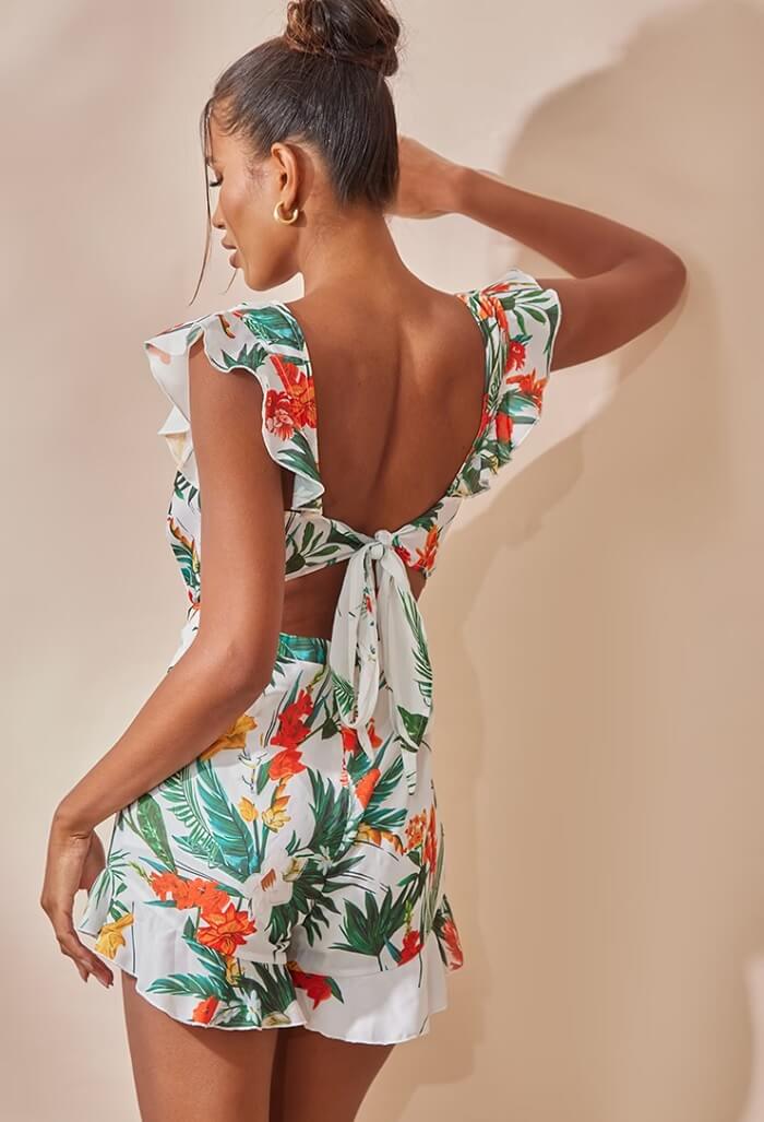 A romper that has tie-up detailing at the back is called Tie Back Romper. This looks cute and also adds a glint of style!