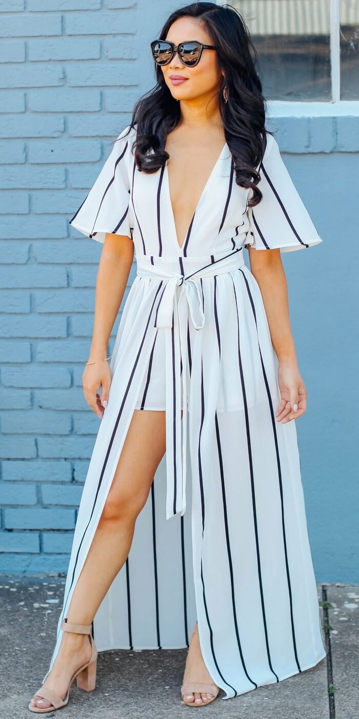 Try the front-slit maxi romper. This one is perfect for a party look. The slit looks sexy, and the design adds a complete oomph factor to your LOTD (Look of the day).